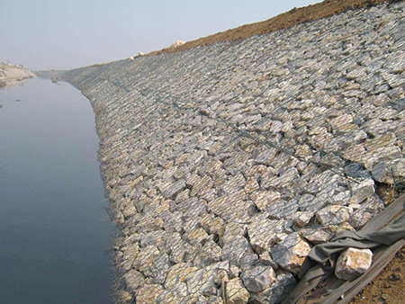 石籠網防護工程技術是指由專用機械將涂塑或不涂塑(PVC/PE)的熱鍍低碳鋼絲織造成石籠網片,然后將其裁剪、拼裝成符合技術需求的石籠網箱,用石塊等填滿后用于堤防、河邊、路基的防護。石籠網防護歸于柔性防護工程,有利于維護河道、堤防岸坡的安全安穩,可完成水土自然交換,增強水體自凈功能,一起又能夠完成墻...